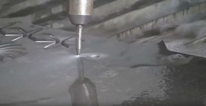Σε αυτό το βίντεο θα δείτε πως το νερό μπορεί με μεγάλη άνεση να τεμαχίσει ή να χαράξει σχήματα πάνω σε μεγάλες επιφάνειες από ατσάλι, αλουμίνιο ή και σίδερο.